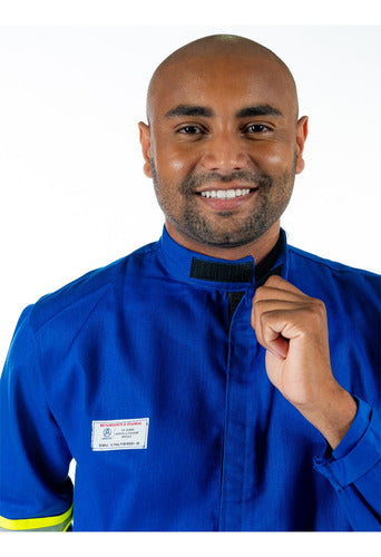 - Proteção contra riscos elétricos: Fabricada com tecido retardante de chama, composta em 100% algodão com tratamento especial para resistência ao fogo, garantindo proteção.