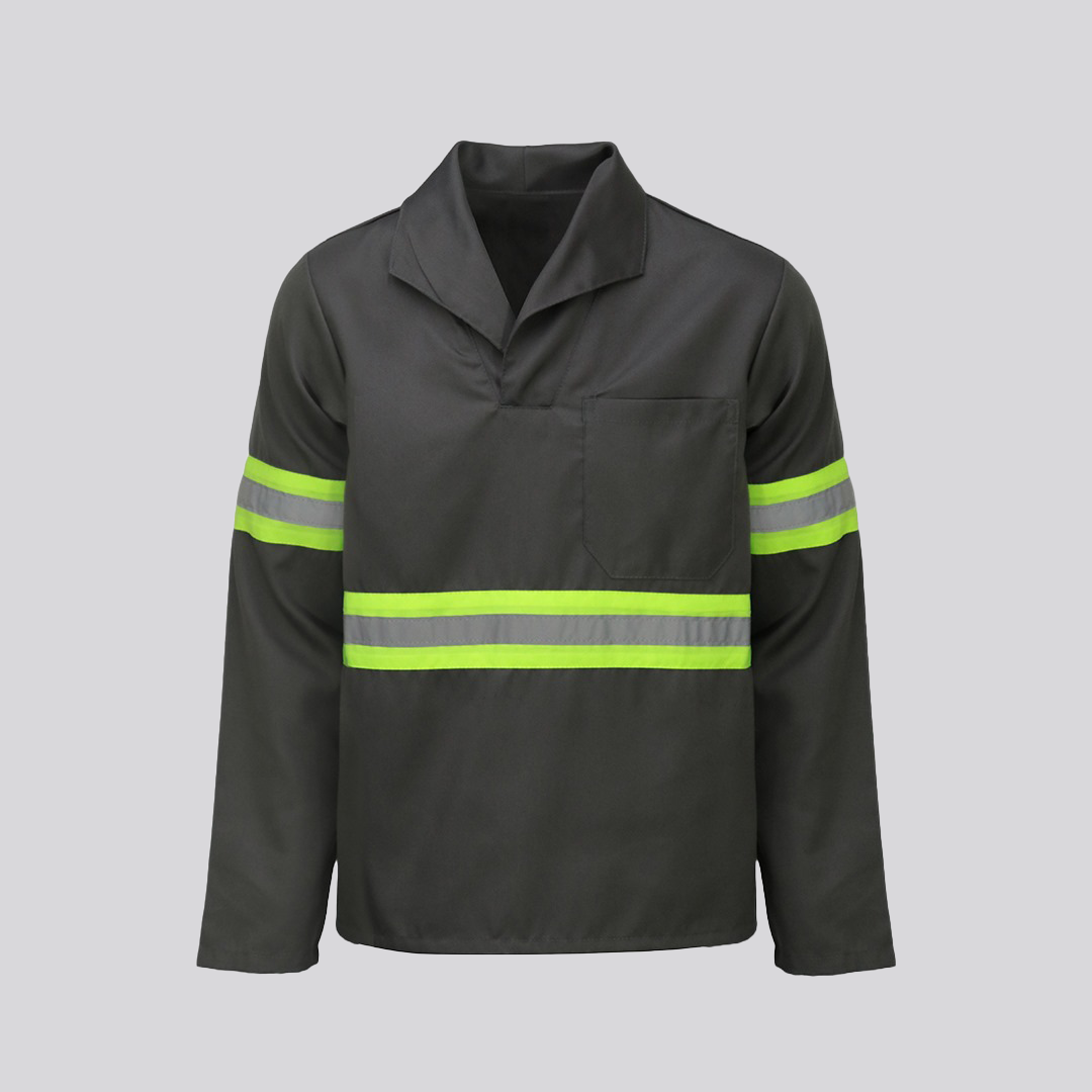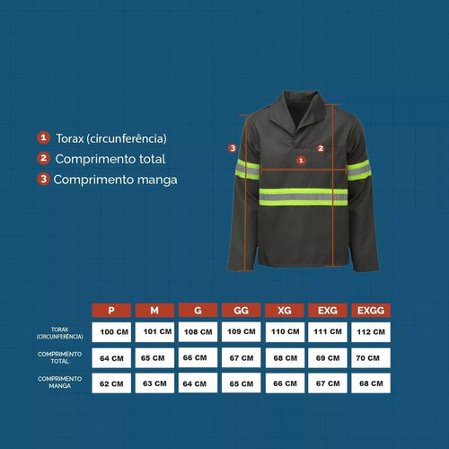 A Camisa com Gola Italiana de Gabardine e Faixa Refletiva é a escolha ideal para profissionais que buscam segurança, conforto e praticidade em seu ambiente de trabalho.