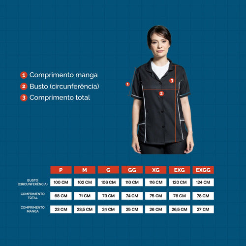 Confeccionado com tecido Gabardine de alta qualidade, composto por 100% poliéster, é uma escolha confiável para uma variedade de ambientes e profissões, desde serviços domésticos até cuidados infantis e muito mais.
